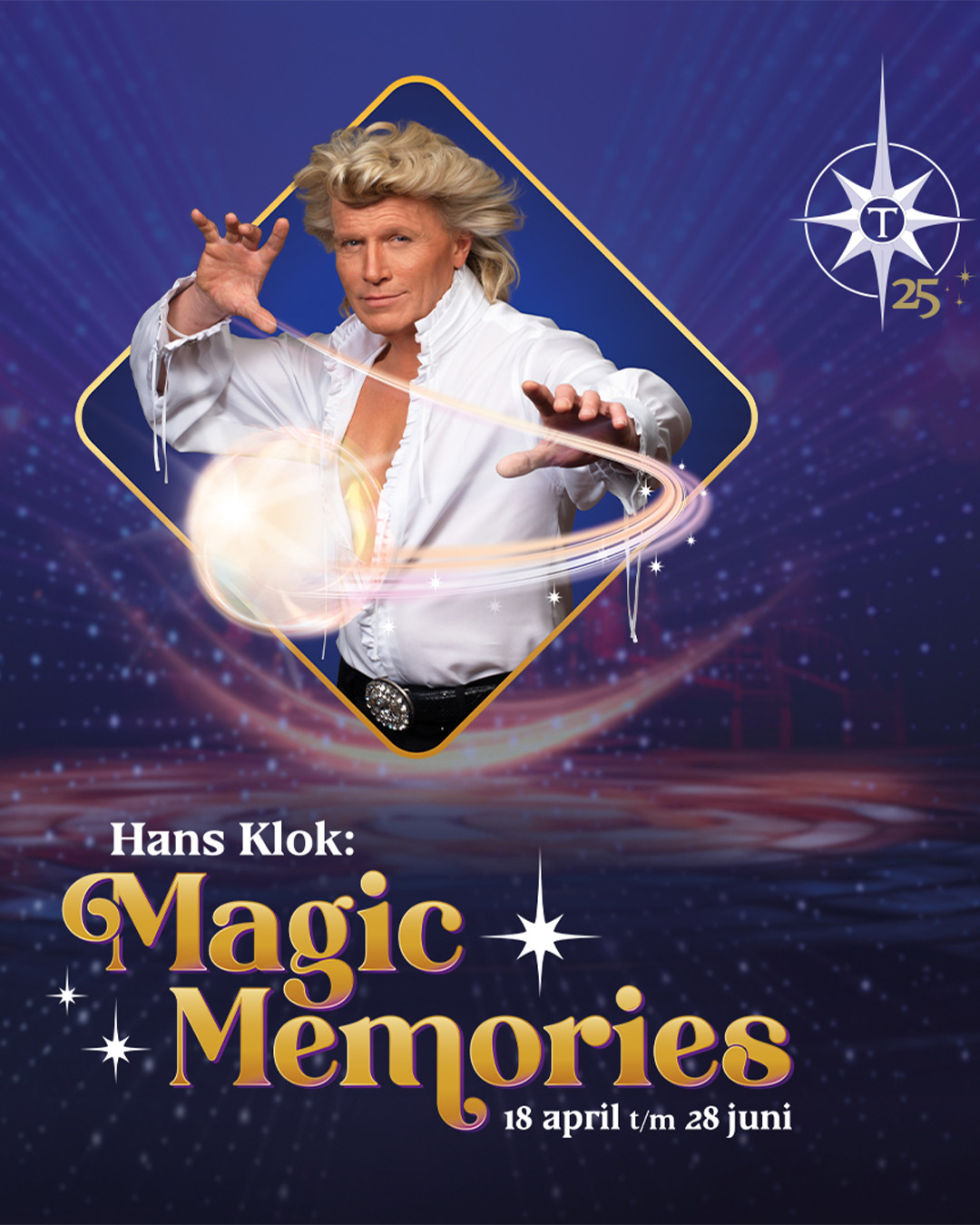 25 jaar geleden toverde Hans Klok Toverland officieel open. Om die feestelijke reden is hij terug! De wereldberoemde illusionist staat op de planken van het Pop-up Circus met de show Hans Klok: Magic Memories. Deze unieke show is speciaal voor Toverland ontwikkeld.